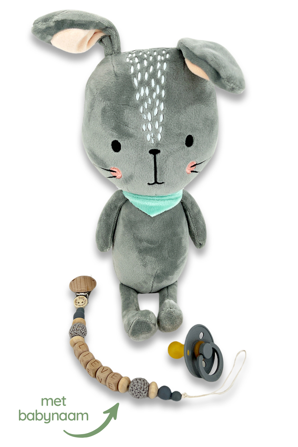 Perfect als cadeau voor je pasgeboren baby. Dit pluche konijn heeft een stevig lijf en zachte armpjes en beentjes. Het konijntje zal snel de favoriete knuffel worden van elke baby.